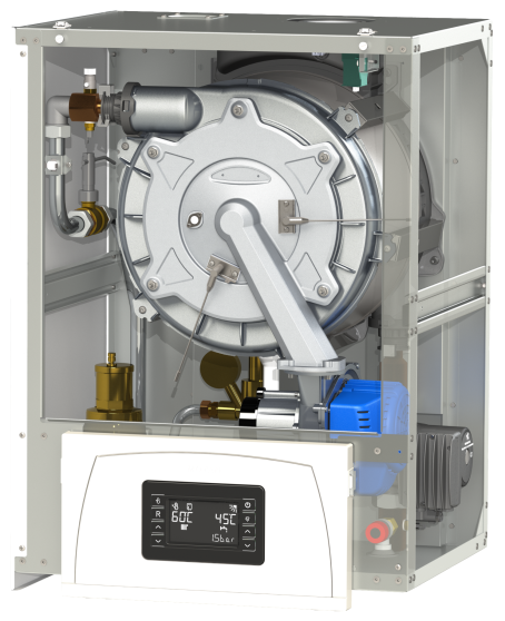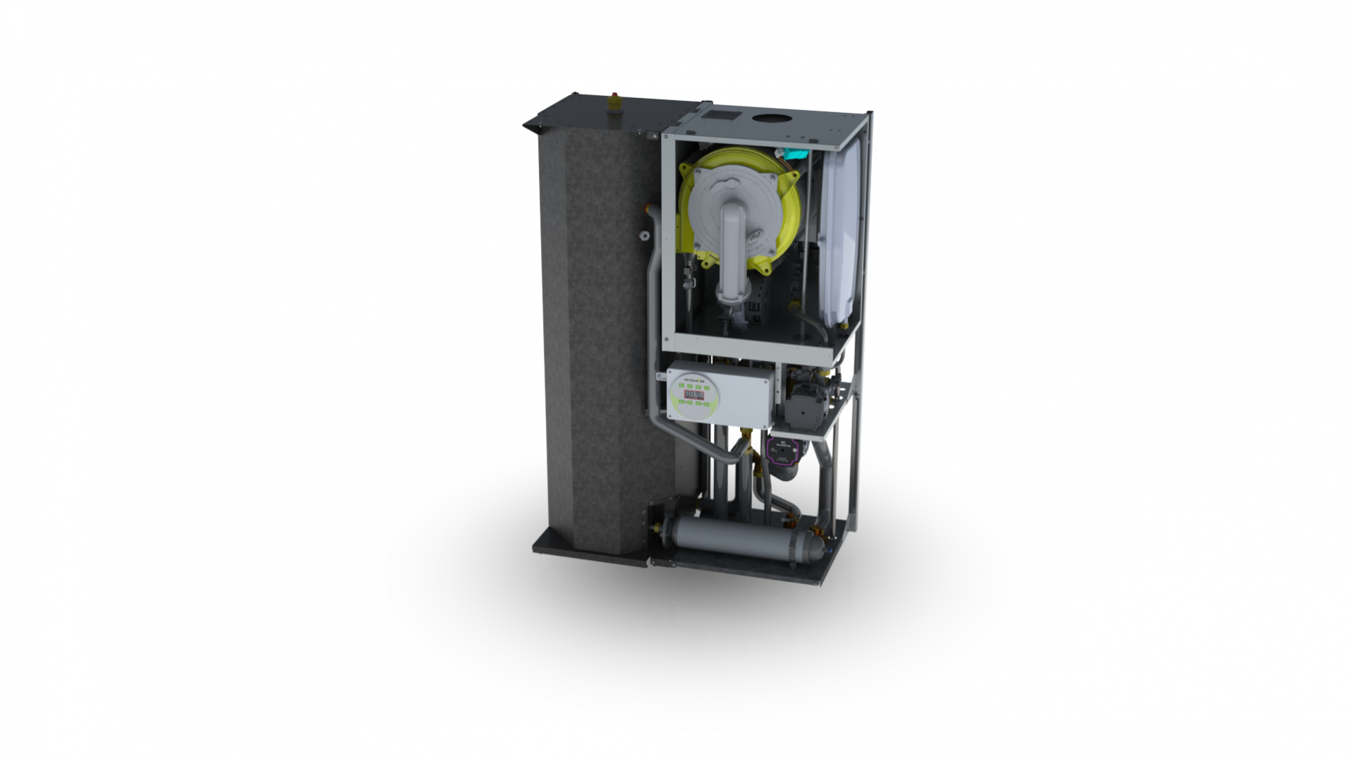Caldeira de Condensação com depósito para acumulação de água quente.